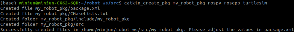 catkin_create_pkg my_robot_pkg rospy roscpp turtlesim
