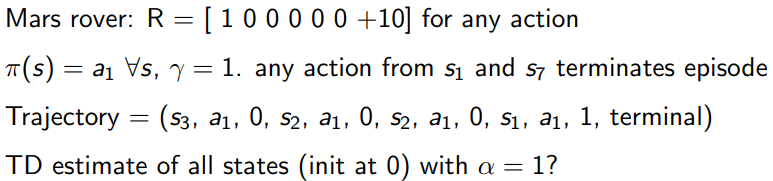 Ans . $V_{s_1}$~ $V_{s_3}=1$ , $V_{s_4}$ ~ $V_{s_7}=0$ → we dont know states 4~7 without experience
