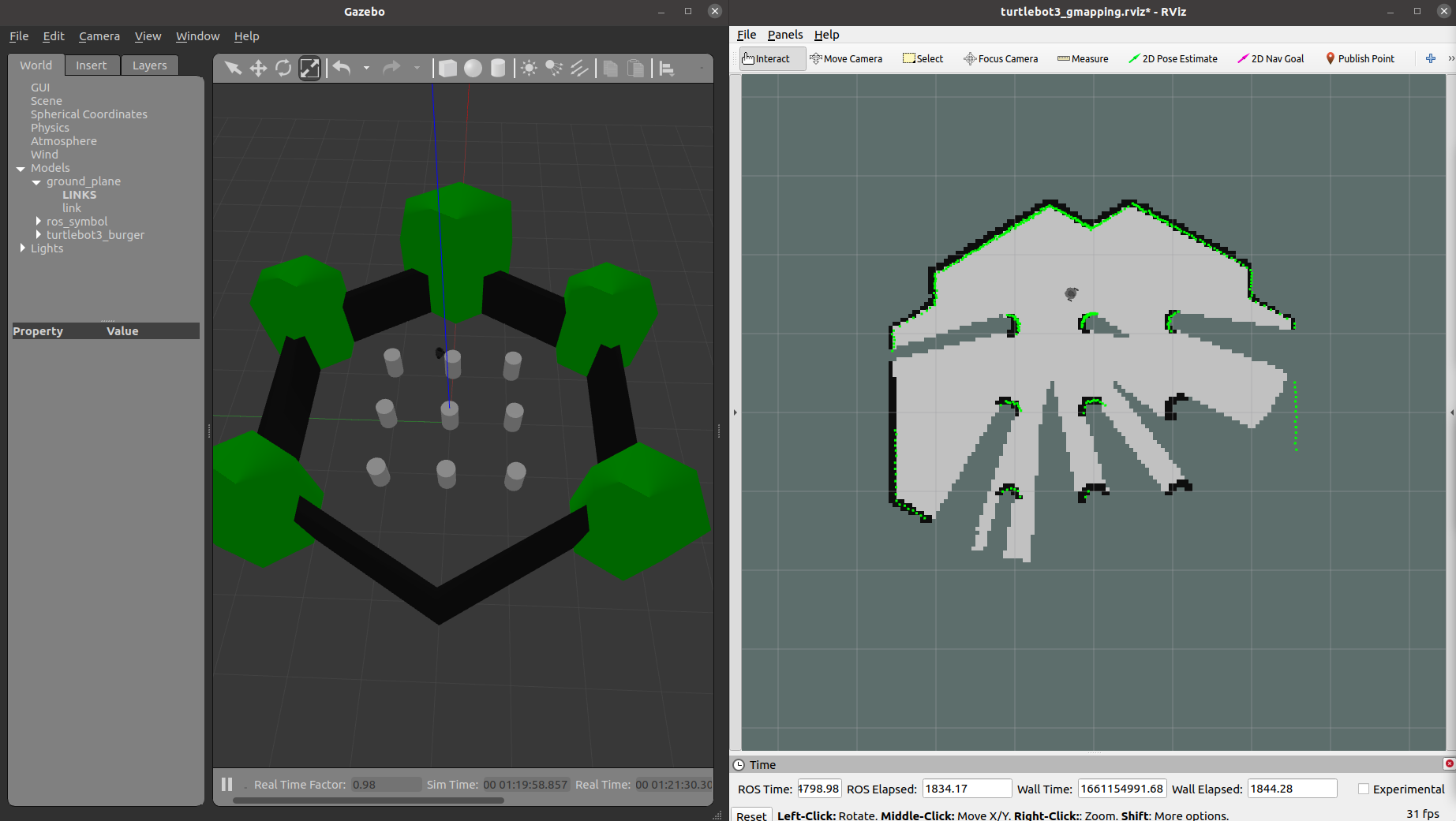 조금 전과 같은 육각형의 맵이 나올 것이다. 여기서 다른 터미널에서 SLAM 노드를 킨다.